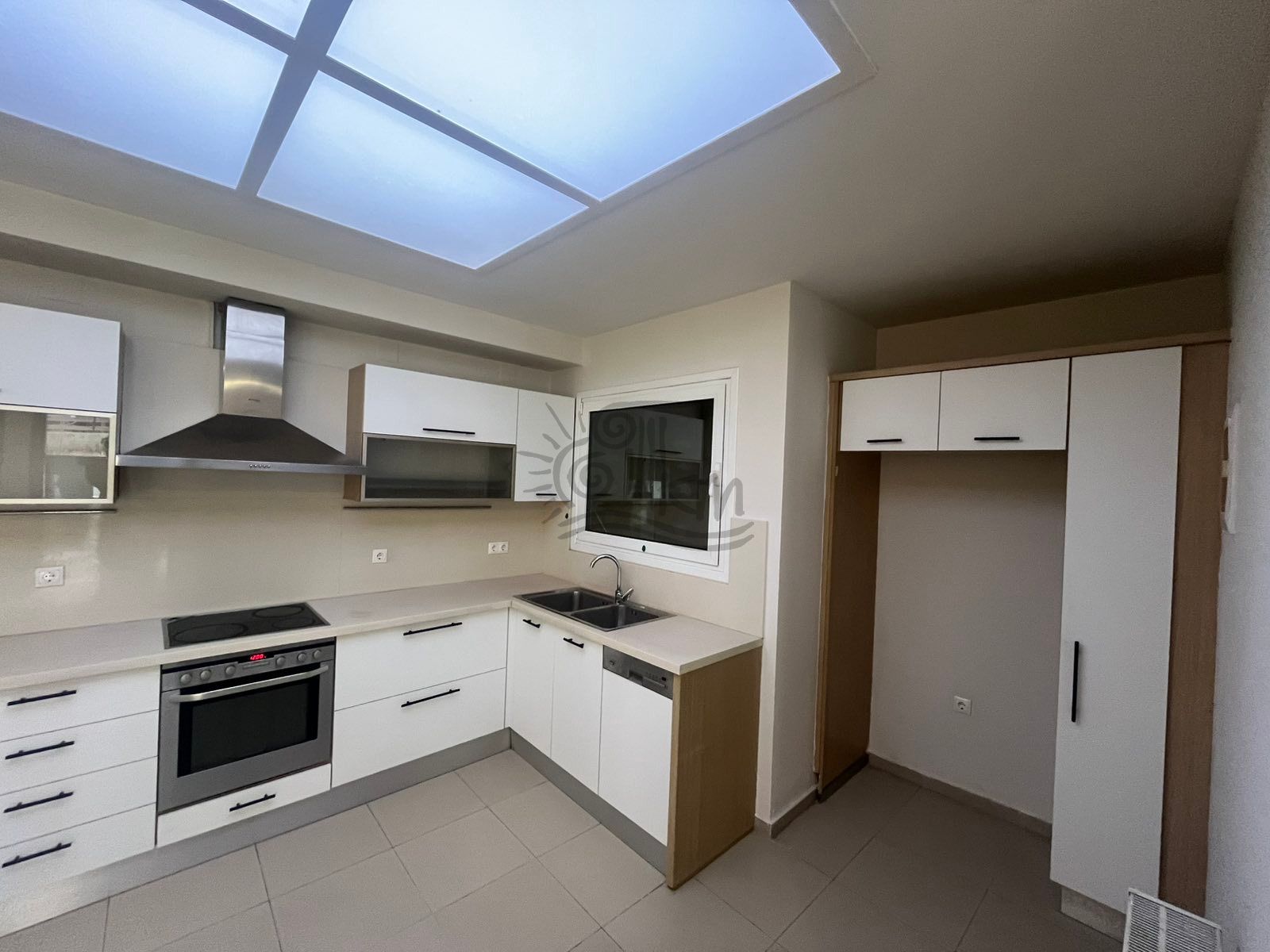 Heraklion, Mastampas. For rent, renovated, bright, four-room apartment of 160 sq m on an elevated ground floor in a very good location.