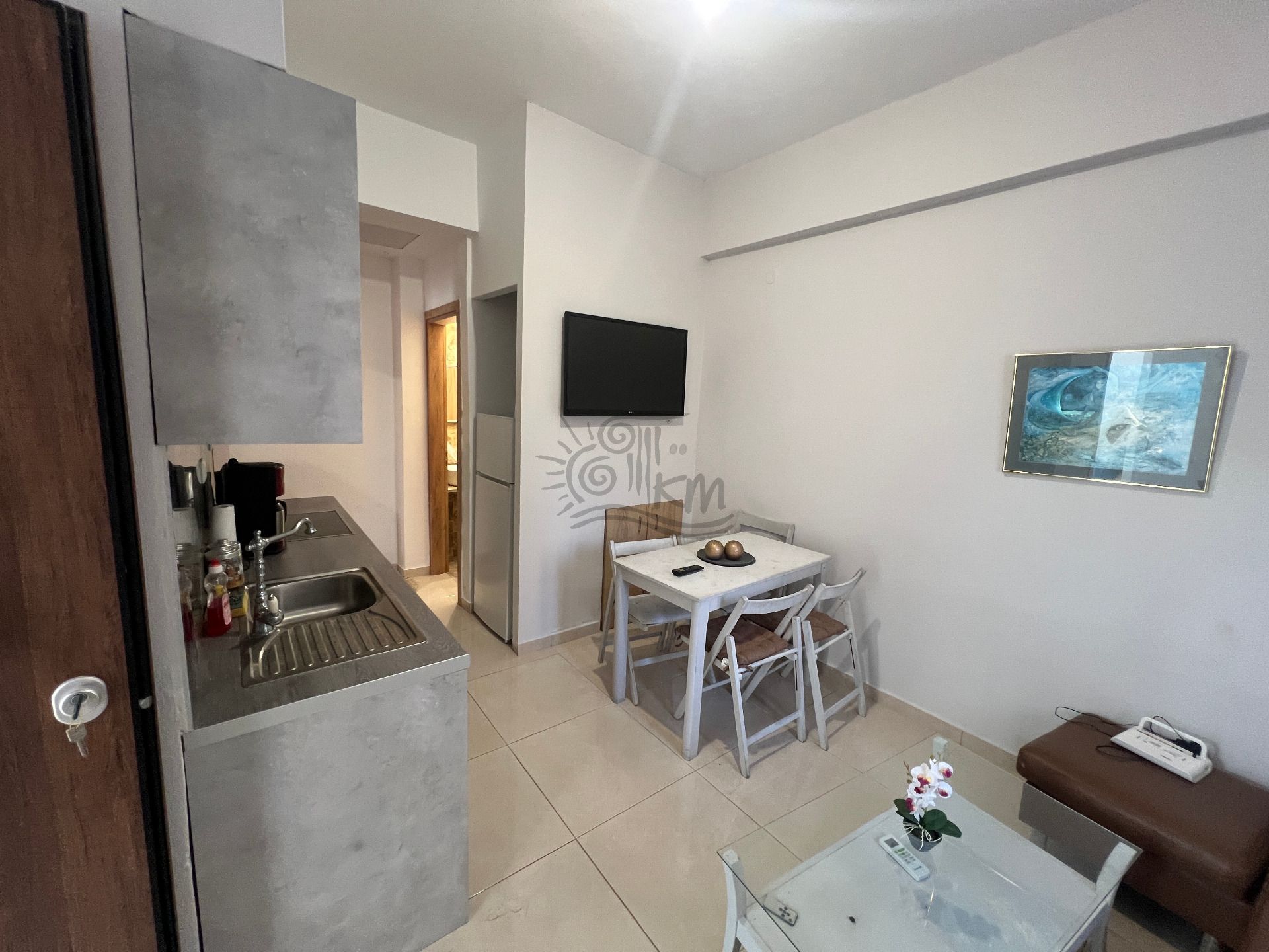 Heraklion, Zentrum. Zur Miete steht eine renovierte 2,5-Zimmer-Wohnung (45 m²) im Hochparterre in zentraler Lage. Die Wohnung ist komplett möbliert und elektrisch ausgestattet und bietet einen hellen, offenen Wohnbereich mit Wohnzimmer und Küche, ein Schlafzimmer, ein zusätzliches kleines Zimmer, das als zweites Schlafzimmer oder Büro genutzt werden kann, sowie ein Badezimmer. Zur Ausstattung gehören außerdem eine Klimaanlage mit Heizfunktion, Solar- und Elektro-Warmwasserbereiter sowie eine kleine Terrasse.