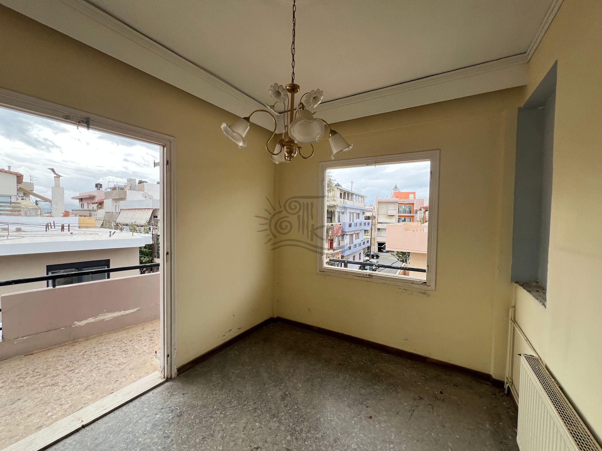 Heraklion, Kaminia. For sale is a three-room corner apartment with a total area of 90 sq m on the second floor. Specifically, it offers a spacious living room, a separate kitchen, two bedrooms and a spacious bathroom. The property needs renovation, allowing you to configure it according to your personal needs and aesthetics. It is an ideal choice for both home ownership and investment development, in a quiet area with easy access to the city center.