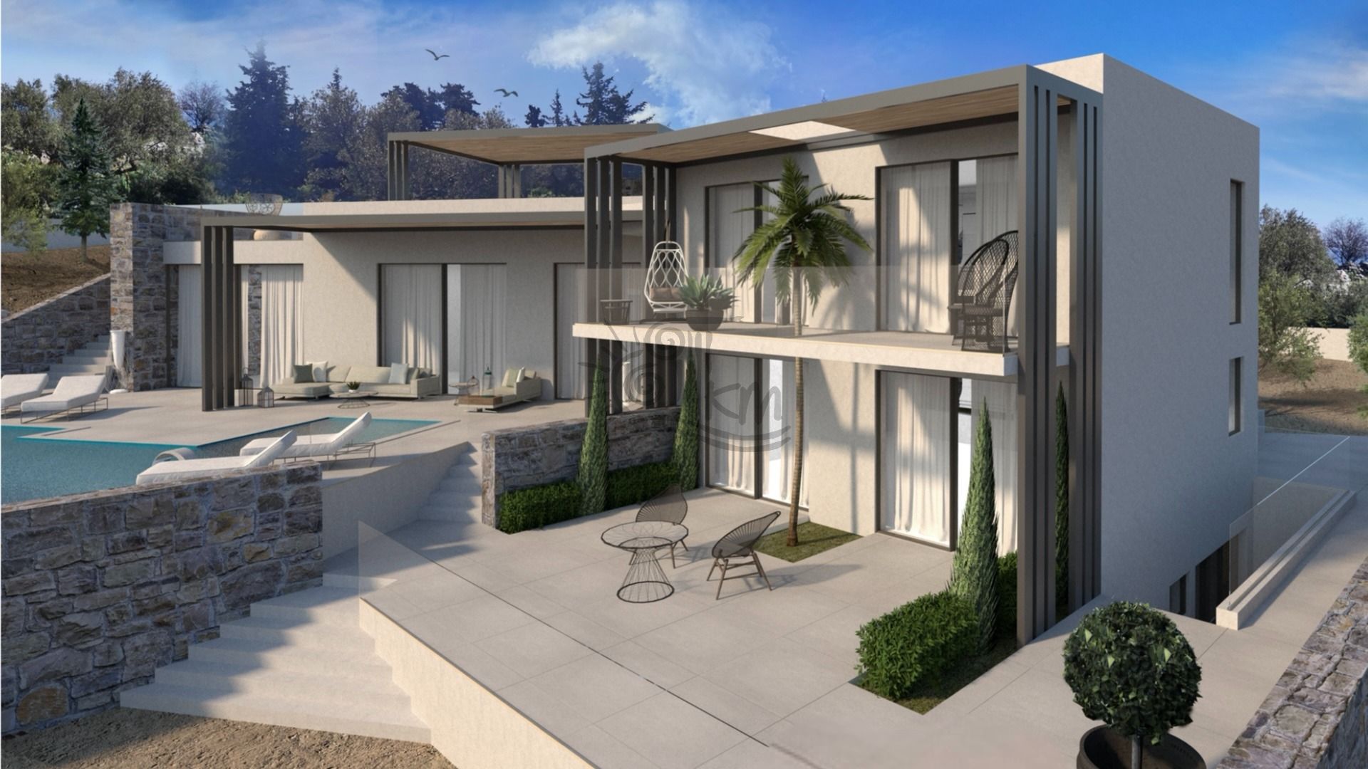 Chania, Municipality of Apokoronas. A unique plot of land with a total area of ​​4,830.35 sq m is for sale with an approved building permit and a complete architectural study for the construction of a modern luxury villa, in an elevated location with a sea view. Specifically, the plot is naturally landscaped with centuries-old olive and cypress trees, has approximately 30 olive trees and offers absolute privacy and tranquility, while it is located in a quality residential environment with high-standard residences. It is available with a fully approved building permit for the construction of a three-story villa with a total area of ​​196.47 sq m, plus a basement of 102.3 sq m, which has been designed by an experienced architectural firm with modern Mediterranean aesthetics and excellent adaptation to the natural relief of the plot. The study provides for an open plan living and dining area with kitchen, four bedrooms, four bathrooms, underground utility rooms with the possibility of creating a private gym, as well as landscaped outdoor areas with a swimming pool, relaxation area, barbecue area and roof terrace with panoramic views. At the same time, there is provision for photovoltaics and increased energy autonomy, ensuring high standards of construction and comfort. The property is located just a few minutes drive from popular beaches, traditional settlements and all basic infrastructure, approximately 45 minutes from the center of Chania and 50 minutes from the international airport, making it an excellent choice for both a private luxury residence and for investment development, as it is a ready-to-build project.