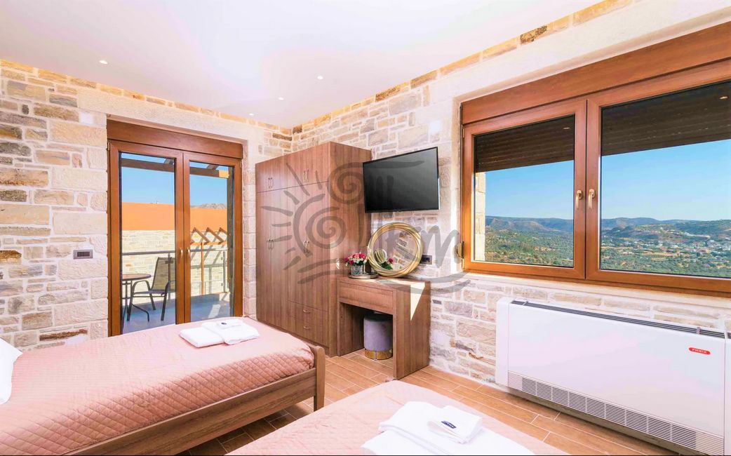 Ираклион, Камилари. Продается роскошный комплекс из двух вилл общей площадью 323,36 кв. м с собственными бассейнами. В частности, резиденции располагаются на двух уровнях и предлагают панорамные виды. Первая вилла площадью 167,28 кв. м включает первый этаж площадью 95,89 кв. м с гостиной и кухней открытой планировки, одной спальней и одной ванной комнатой. На верхнем этаже площадью 71,39 кв. м расположены две спальни, две ванные комнаты и большие веранды с уникальными видами. Вторая вилла площадью 156,08 кв. м состоит из первого этажа площадью 78,04 кв. м с гостиной и кухней открытой планировки и ванной комнатой, а на втором этаже такой же площади находятся две спальни, ванная комната и веранды. Как правило, обе резиденции сдаются полностью меблированными и оборудованными всей необходимой электротехникой, в них также установлены кондиционеры. На прилегающей к каждой вилле территории разбит прекрасный ландшафтный дизайн с газонами и разнообразными деревьями, а также имеется летняя кухня с традиционной дровяной печью и барбекю, а также мощеные дворики. Это прекрасная возможность для инвестиций, как для приобретения жилья, так и для туристической деятельности.